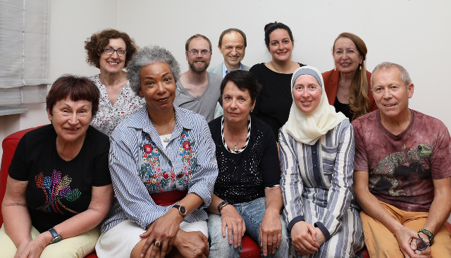 Das Kalenderteam: v.l.n.r.: Rose Proszowski (Judentum), Margit Krammer (Kath.), Marion I. Botland (Evang.), Albert Unterberger (Kath.), Harald Hutterer (Buddh.), Evelyn Hödl (Kath.), Barbara Huterer (SOL), Amina Baghajati (Islam), Otti Käfer (Bahá’í), Klaus Schuster (Redaktion)