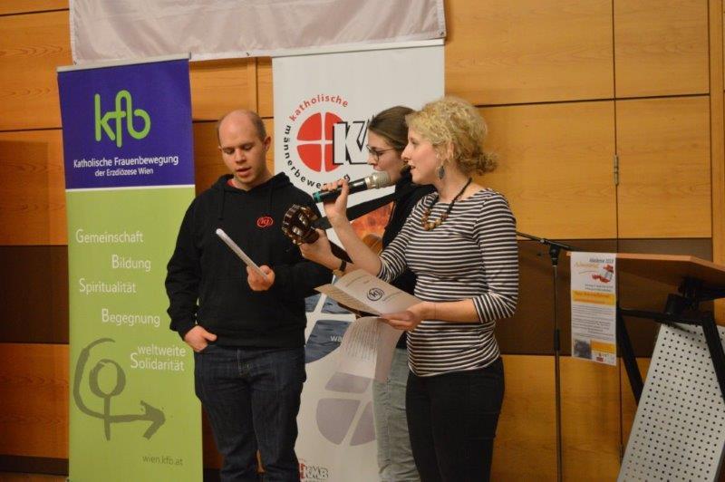 Johann Schachenhuber, der Vorsitzende der Katholischen Aktion im Vikariat unter dem Manhartsberg, betonte, „Meine Generation kennt die Vergangenheit nur noch vom Erzählen. Mein Vater hat mir sehr viel erzählt. Noch besser ist es das aufzuschreiben, damit es glaubhaft weiter gegeben werden kann“. In dieser politischen Zeit sind wir „mit konkreten Taten gefordert“, war den Vertretern der Katholischen Jugend klar. Die Vorsitzende der Katholischen Jugend der Erzdiözese Wien, Judith Faber, und die KJ-Weinviertel Vorsitzenden Markus Romstorfer und Veronika Stadlbacher luden daher beim Abschlussgebet die TeilnehmerInnen ein „für die Mutigen“ zu singen und „authentische und mutige Vorbilder für die heutige Zeit zu sein“.