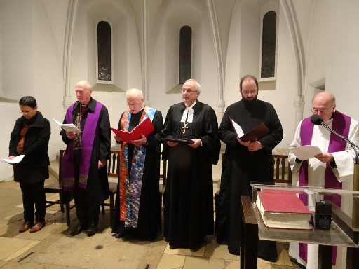 Die Erinnerung an die tragischen Ereignisse von 1938 ist stets notwendig, es braucht jedoch auch besondere Achtsamkeit auf gefährliche Entwicklungen in der Gegenwart: Das war der Tenor am Freitagabend, 9. November 2018, beim diesjährigen ökumenischen Gottesdienst in der Wiener Ruprechtskirche zum Gedenken an die nationalsozialistischen Novemberpogrome, die sich heuer zum 80. Mal jähren. Den Gottesdienst gestalteten u.a. der Vorsitzende der Superiorenkonferenz der Männerorden, Abt emeritus Christian Haidinger, der evangelische Bischof Michael Bünker, der griechisch-orthodoxe Priester Athanasius Buk und der altkatholische Bischof Heinz Lederleitner. Unter den Teilnehmern waren auch der Vorsitzende des Ökumenischen Rates der Kirchen in Österreich, Landessuperintendent Thomas Hennefeld, der Wiener lutherische Superintendent Hansjörg Lein und KAÖ-Generalsekretär Josef Pumberger.