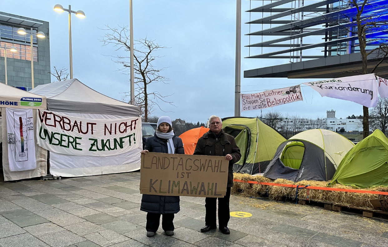 Zur Klimafrage machte ein Protest-Camp in der Woche vor der Landtagswahl darauf aufmerksam, dass es besonders um eine Klimawahl geht. Alle Parteien wurden dazu aufgefordert, eine engagiertere Klimapolitik zu machen, um zum 1,5 Grad-Ziel der Pariser Klimaziele beizutragen.