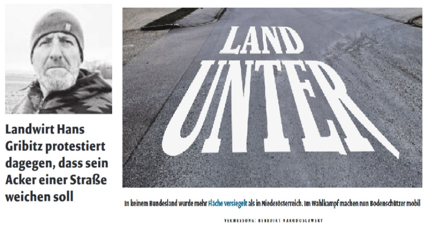 Hans Gribitz, ein betroffener Landwirt, der im Zuge des Straßenbauprojekts Ostumfahrung in Wiener Neustadt enteignet werden soll, sagte: “Natürlich tut es weh, Grund zu verlieren. Viel schlimmer ist es jedoch, dass die Ostumfahrung ein Symbol einer veralteten Politik ist. Die Regierung will weitermachen wie bisher. Dabei liegen die Fakten der Klimakrise seit Jahren auf dem Tisch. Es braucht eine Kehrtwende.“