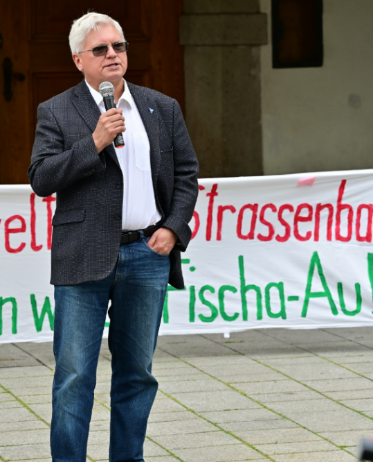 Reinhard Bödenauer solidarisierte sich dabei mit den von der Enteignung betroffenen Landwirten und fand deutliche Worte: „Es ist 10 Minuten nach Zwölf. Jeder Quadratmeter Boden der versiegelt wird, ist einer zu viel. Wir sind solidarisch mit den Landwirt:innen, die sich unter Druck gesetzt fühlen und gegen die drohende Enteignung ihrer wertvollen Ackerflächen protestieren!“